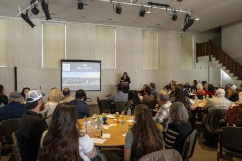 The Pendleton Chamber of Commerce hosted the luncheon Wednesday early afternoon, Feb. 25, inside Pendleton Center for the Arts. For about 40 minutes, McDonald as the keynote speaker addressed a group of about 60 community members. She highlighted the efforts city council and staff are making on four central issues in the city’s strategic plan: homelessness, economic development, public safety and infrastructure maintenance.